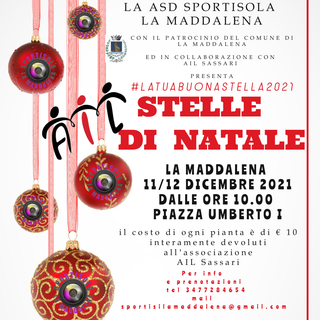 Dal 2017 a La Maddalena Sportisola supporta AIL SASSARI nella vendita e nella consegna delle Stelle di Natale e delle Uova di Pasqua AIL; anche in un momento così complesso e difficile, la ASD sarĂ Â presente in Piazza Umberto I per la vendita e la distribuzione delle stelle di Natale e, così come accaduto ad aprile, confidiamo nel gran cuore dei maddalenini per aiutare l’associazione nazionale nonostante la grave emergenza sanitaria.