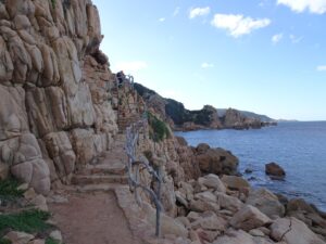 Arrivati all’ultimo parcheggio , imbocchiamo il famoso sentiero, immortalato da centinaia di fotografi e appassionati di trekking: un passaggio di circa 2 km tra rocce rosse e mare , ed ecco che dall’alto della scalinata appare la spiaggia di Li Cossi, incastonata da scogliere che racchiudono l’arenile sabbioso riparato dal vento e un mare color smeraldo con fondale basso e digradante.